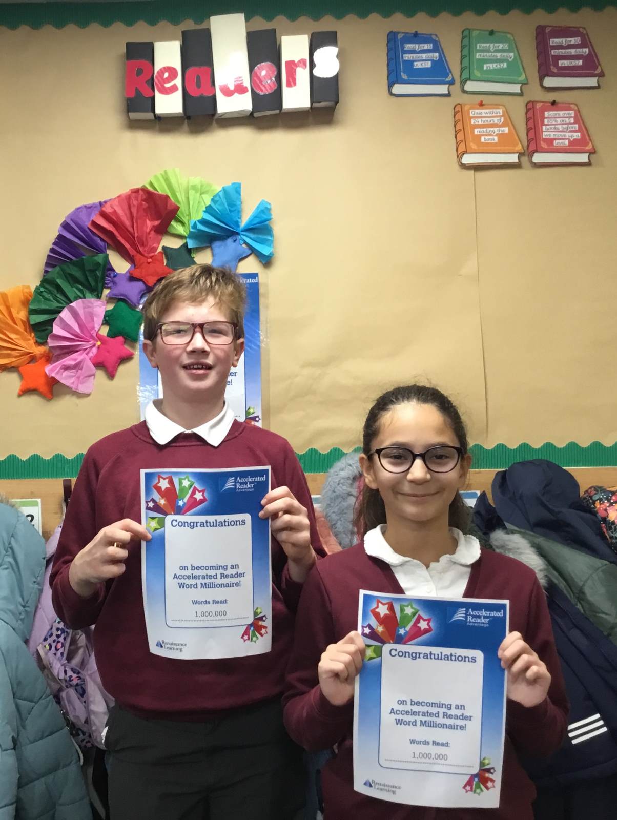 10th - Awards in assembly. Two of our Year 6 children, were awarded certificates today. They are our first millionaire readers for this year. Congratulations.