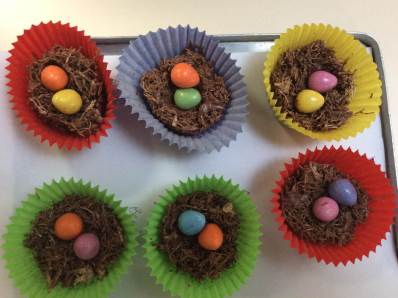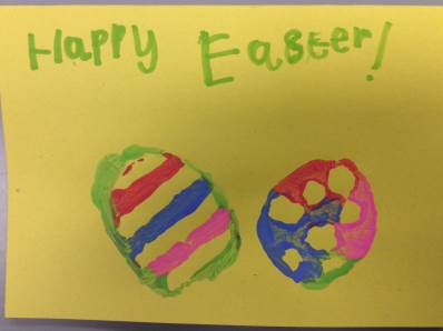 The children have been busy making cards and Easter nests for Easter. For the printing we used potatoes with patterns carved into them. They looked really effective!