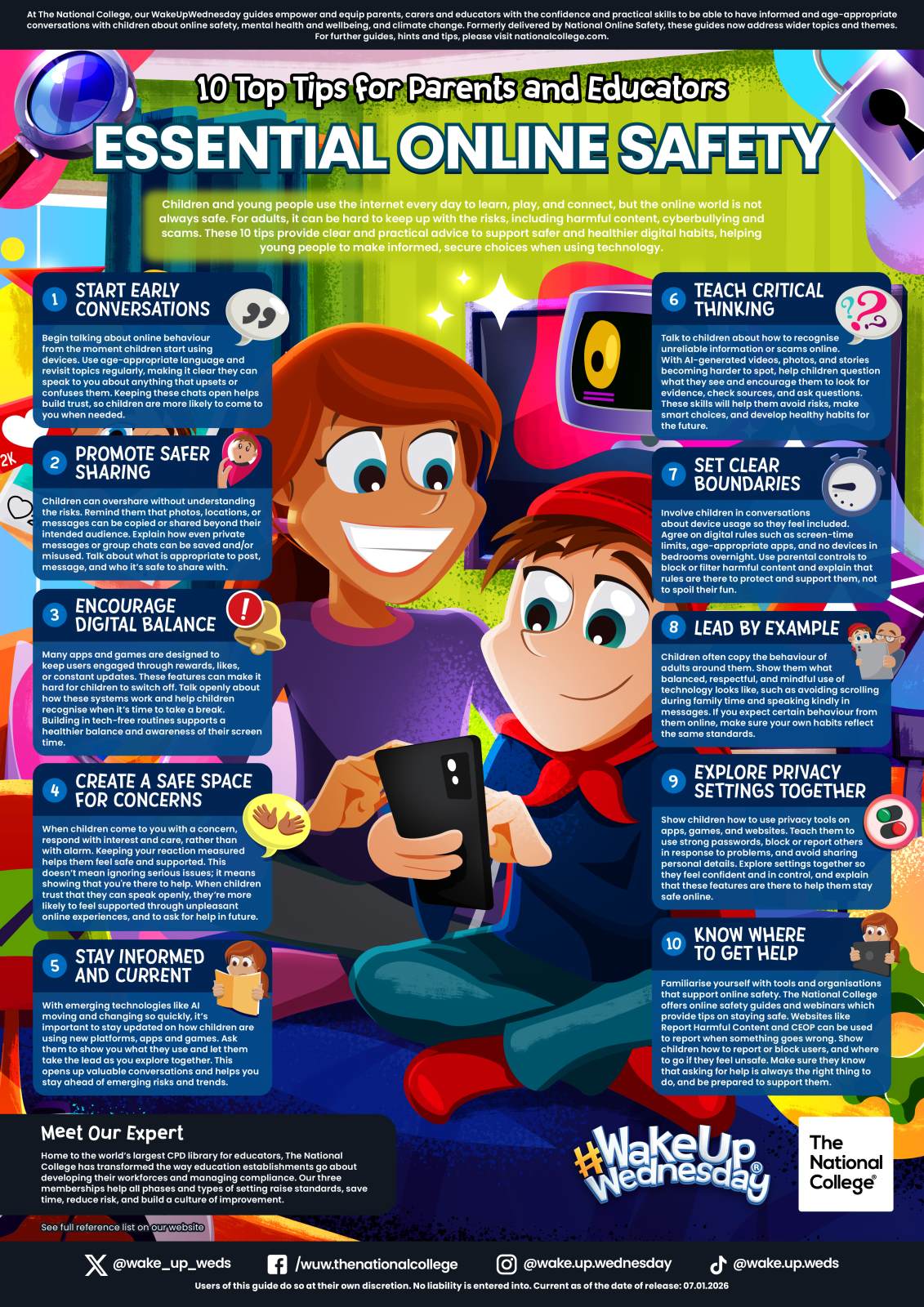 With Safer Internet Day coming up, we are sharing Wake Up Wednesday Guides for each Year group. Ten practical and evidence-informed online safety tips to help adults guide children toward healthier and more informed digital habits.