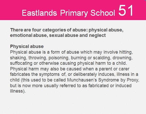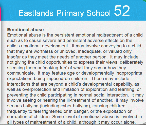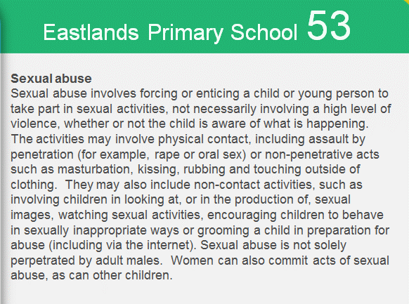 At Eastlands Primary School we are committed to safeguarding and promoting the welfare of children. We expect all staff, volunteers and visitors to share this commitment.