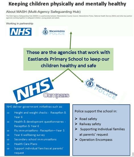 Eastlands Primary works in partnership with Warwickshire Police and Warwickshire Children’s Services to support pupils who are affected by incidents of domestic violence and abuse. This scheme is called Operation Encompass.