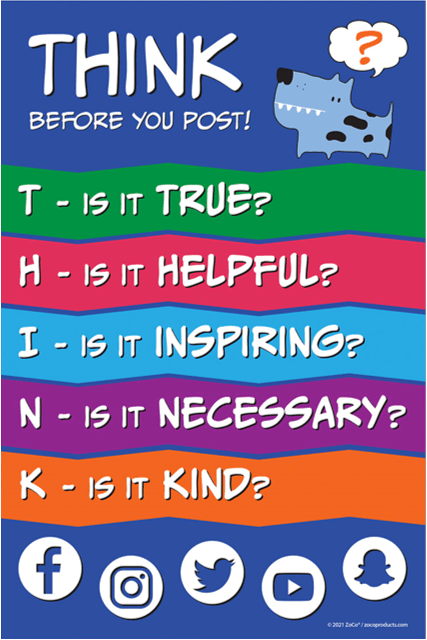 We ask all parents to consider if information they are writing or passing on through any social media is factual, kind and necessary before sending.