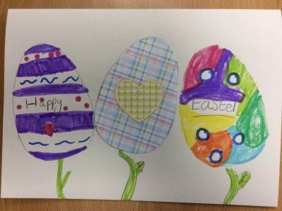 The children have been busy making cards and Easter nests for Easter. For the printing we used potatoes with patterns carved into them. They looked really effective!