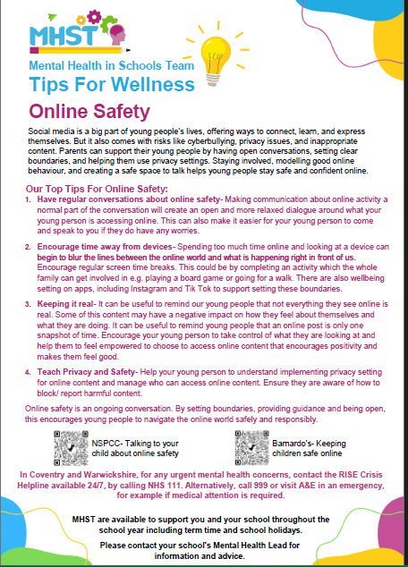 Welcome back to school! Please see some information you may find helpful. Visit our online safety and support for families and useful websites webpage for more.