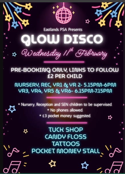 Our PSA have met together to discuss the year ahead. It is all going to start with a glow disco! Write the date in your diary and more information will be available soon.