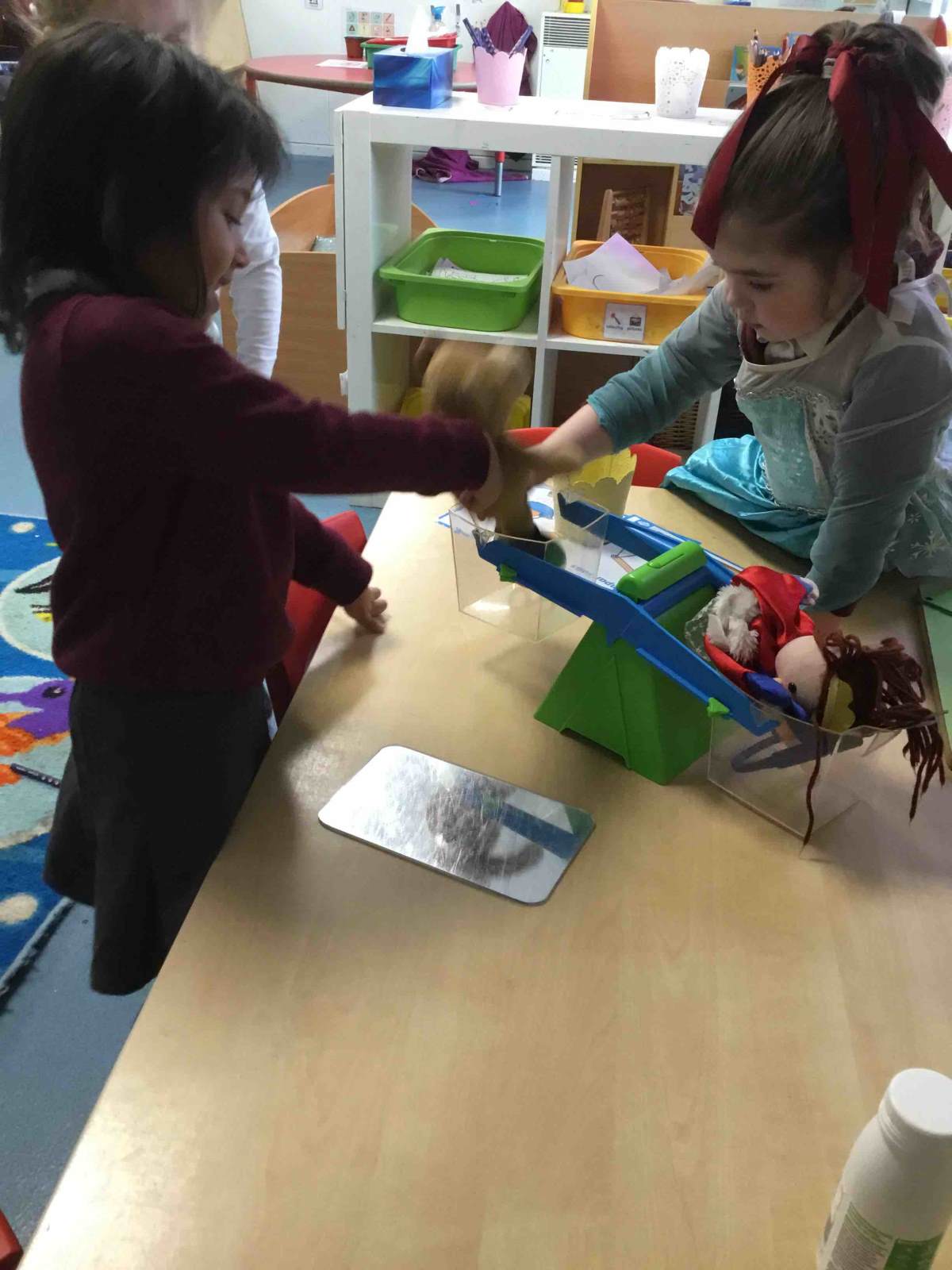 Through these texts the children have learnt a range of mathematical concepts, such as comparing sizes involving height and weight and practicing using key vocabulary such as 'big, small, long, short, heavy and light'. We also revisited prepositional language again and created our own obstacle courses in the outdoor area, where we practiced saying key words such as , 'over, on, in between, across'.