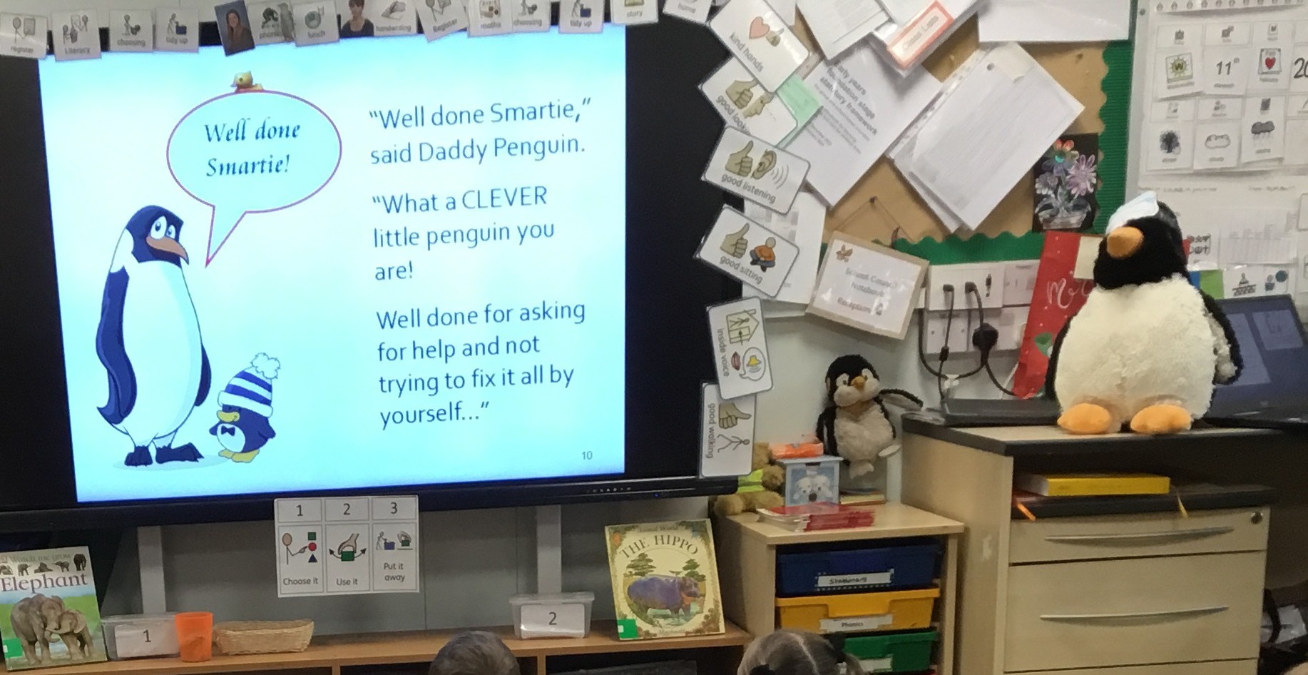 This afternoon we spent time thinking about online safety. We all enjoy being online, we listen to stories, watch videos, play games and find out new things. We had a visitor, Smartie the Penguin! He brought a special story to help us to keep safe online.
