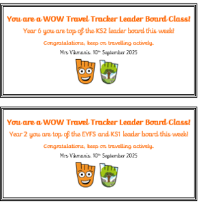 WOW is a led by the children where they self-report how they get to and from school every day using our interactive WOW Travel Tracker. If they travel sustainably three times a week for a month, they will be rewarded with a WOW badge. It's that easy!