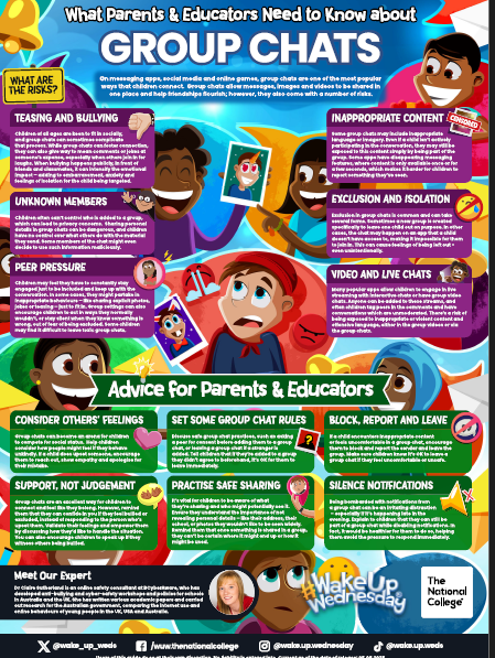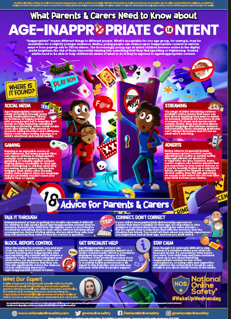 Wake Up Wednesday is a weekly campaign by National College for Online Safety that provides free online resources, guides, and courses for parents, carers, and educators. Each week we will add different information to support Online Safety, Keeping Safe and Wellbeing. Come back next Wednesday!
