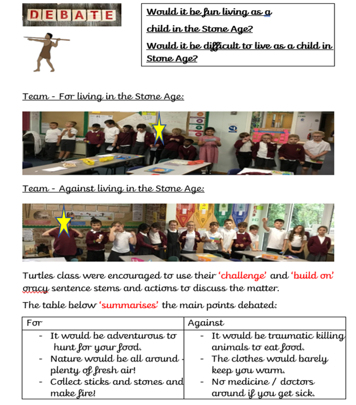 Year 3 have been loving our work on the Stone Age and we've been on a journey through prehistory from the Palaeolithic all the way to the Iron Age. The children are very knowledgeable now about life in the Stone Age and have loved our texts: The Stone Age Boy, How to Wash a Woolly Mammoth and Ug. We had a mini debate on whether they would argue for / against living in the Stone Age. They were very convincing!