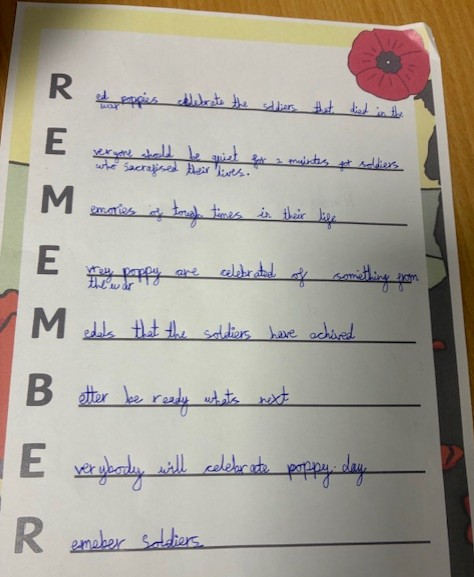 Today as a school, we took part in Remembrance. At 11am, we were silent to remember. Have a look at some of our learning.