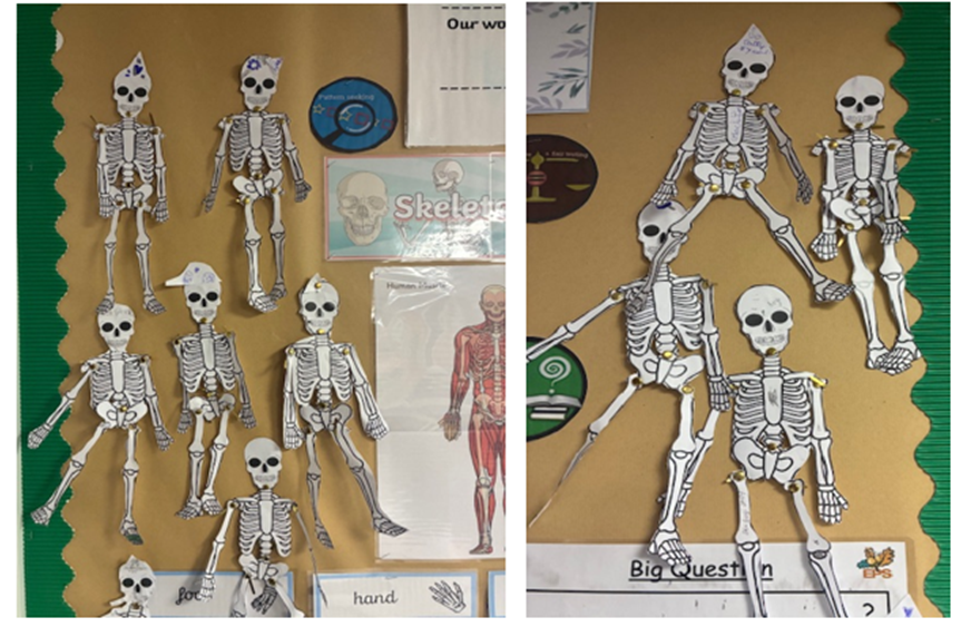 The children have made split pin skeletons today in science. Some even got birthday hats to celebrate a birthday in class! The children persevered with their cutting and attaching skills. They now know many of the bones in the human body and they should be able to tell you how many bones a human body has.
