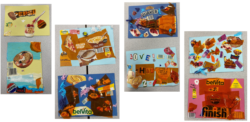 In Art, we have been learning about tone, texture and proportion. We made these amazing collages out of packaging, thinking about the use of colour and space to create a balanced composition.