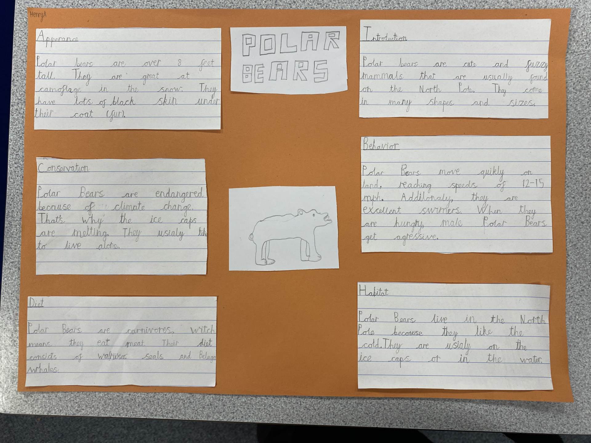 We have now finished writing our non-chronological reports about polar bears and they are fantastic! The children are really enjoying our class book, 'The Last Bear' - it has taught us lots about polar bears and why it is important to look after our planet.